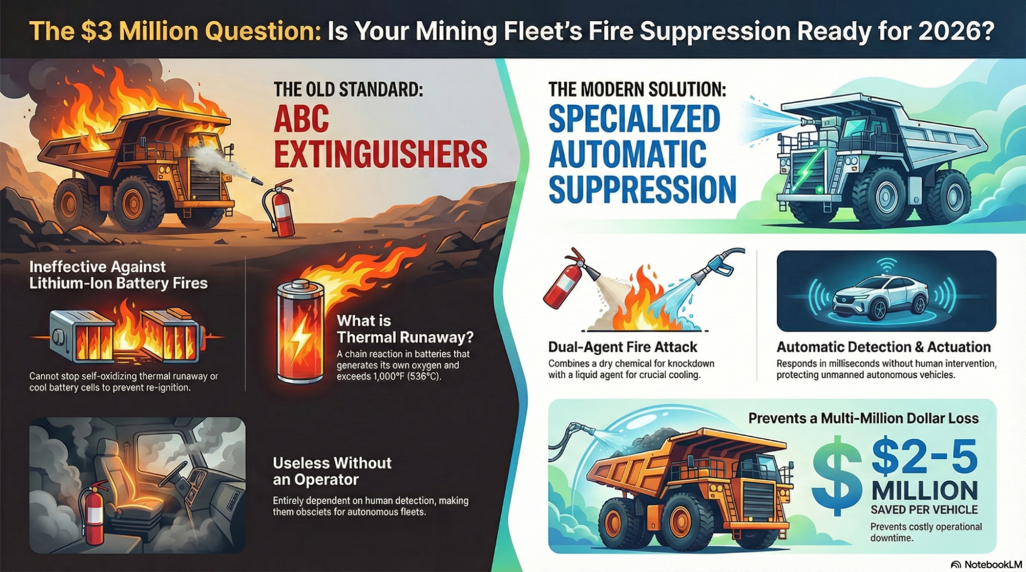 Lithium-Ion vs. ABC Extinguishers: Why Your Mining Fleet Needs Specialized Suppression in 2026